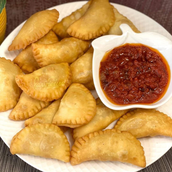 Craquez pour ces pastels généreusement garnis, enveloppés dans une pâte dorée et croustillante qui fond délicieusement en bouche. Chaque bouchée offre un parfait équilibre entre douceur, parfum épicé et gourmandise authentique, surtout accompagnée de leur sauce tomate maison riche et savoureuse.